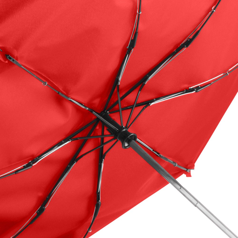 Markanter Doppelautomatik-Taschenschirm in Übergröße mit modisch reflektierender Paspelierung Komfortable Doppelautomatik-Funktion zum schnellen Öffnen und Schließen, hochwertiges Windproof-PLUS-System für eine maximale Gestell-Flexibilität bei stärkeren Windböen, flexible Fiberglasschienen, verchromter Stahlstock, Bezug mit modischer Reflexpaspel in silber, Griff in Alu-Finish mit integrierter Auslösetaste und Werbeanbringungsmöglichkeit