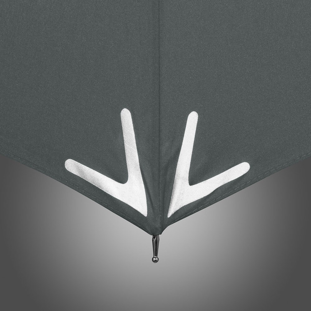 Cleverer Automatik-Stockschirm mit modischen Reflektoren und LED-Leuchte Komfortable Automatik-Funktion zum schnellen Öffnen, Windproof-System für höhere Gestell-Flexibilität und bessere Windsicherheit, flexible Fiberglasschienen, Bezug mit 3M™ Scotchlite™ Reflective Material an den Segmentecken als modisches Detail, Soft-Feel-Griff mit Werbeanbringungsmöglichkeit und schwenkbarer LED-Lampe, Leuchtkopf (inkl. Knopfzellen) verstellbar auf weißes Dauerlicht oder rotes Blinklicht, höherer Korrosionsschutz durch schwarze Galvanisierung des Stahlstocks. WEEE-Reg.-Nr. DE 14360689, Batt-Reg.-Nr. DE 52803080, Batterien (2 x CR2025) im Lieferumfang enthalten. Weitere Safebrella®-Modelle: 5071, 5171, 5471 und 5571.