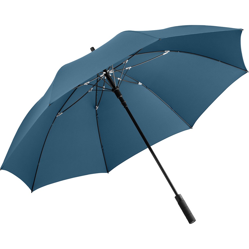 Exklusiver Automatik-Golf-/Gästeschirm für zwei Personen mit Reifenprofil-Design-Elementen Komfortable Automatik-Funktion zum schnellen Öffnen, hochwertiges Windproof-PLUS-System für eine maximale Gestell-Flexibilität bei stärkeren Windböen, flexible Fiberglasschienen mit grauen Gelenken, handsympathischer Soft-Feel-Griff im Reifenprofil-Design mit integrierter Auslösetaste und Werbeanbringungsmöglichkeit. Auch als Taschenschirm (Art. 5455) erhältlich.