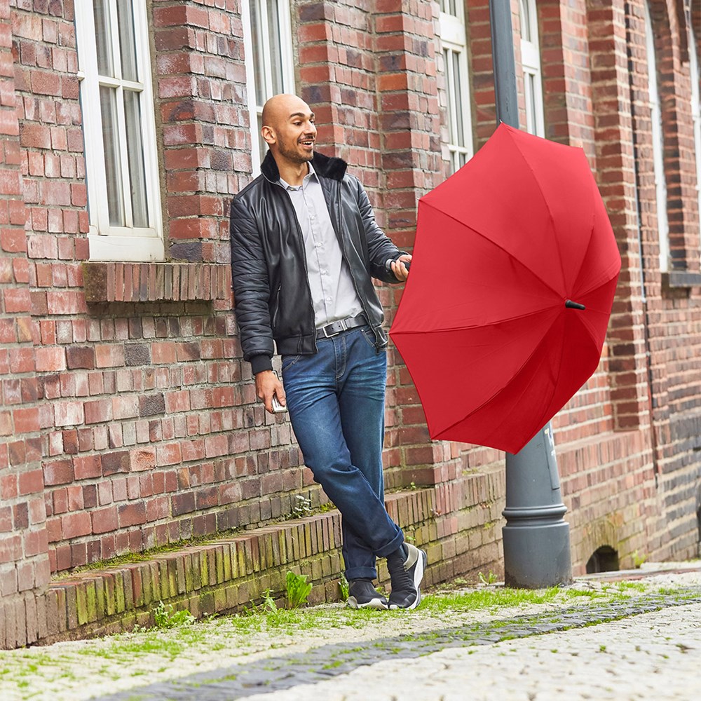 Außergewöhnlicher Automatik-Stockschirm in mittlerer Größe zur Wiedergabe von Audio-Logos Komfortable Automatik-Funktion zum schnellen Öffnen, hochwertiges Windproof-PLUS-System für eine maximale Gestell-Flexibilität bei stärkeren Windböen, flexible Fiberglasschienen, zweifarbiger handsympathischer Soft-Feel-Griff mit integrierter Auslösetaste, Lautsprecher und Werbeanbringungsmöglichkeit, höherer Korrosionsschutz durch schwarze Galvanisierung des Stahlstocks. WEEE-Reg.-Nr. DE 14360689, Batt-Reg.-Nr. DE 52803080, Batterien (2 x AAA) im Lieferumfang enthalten.