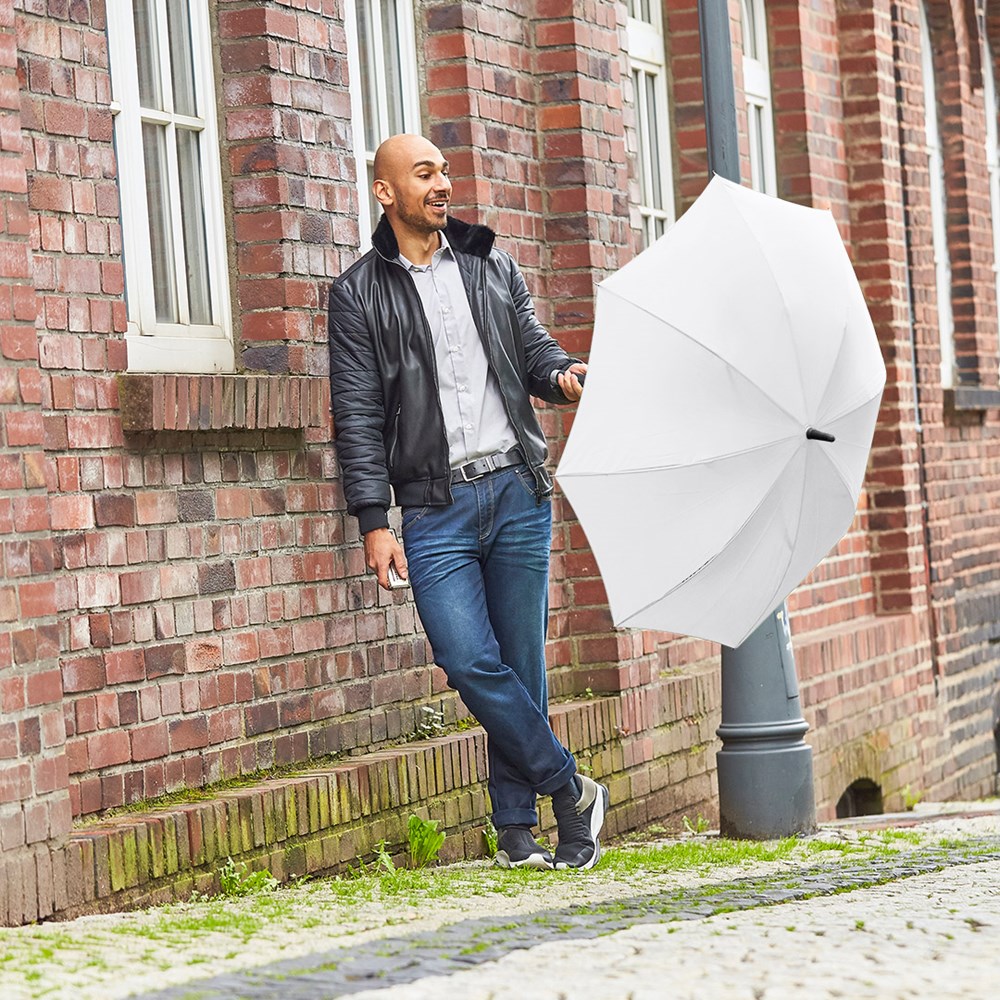 Außergewöhnlicher Automatik-Stockschirm in mittlerer Größe zur Wiedergabe von Audio-Logos Komfortable Automatik-Funktion zum schnellen Öffnen, hochwertiges Windproof-PLUS-System für eine maximale Gestell-Flexibilität bei stärkeren Windböen, flexible Fiberglasschienen, zweifarbiger handsympathischer Soft-Feel-Griff mit integrierter Auslösetaste, Lautsprecher und Werbeanbringungsmöglichkeit, höherer Korrosionsschutz durch schwarze Galvanisierung des Stahlstocks. WEEE-Reg.-Nr. DE 14360689, Batt-Reg.-Nr. DE 52803080, Batterien (2 x AAA) im Lieferumfang enthalten.