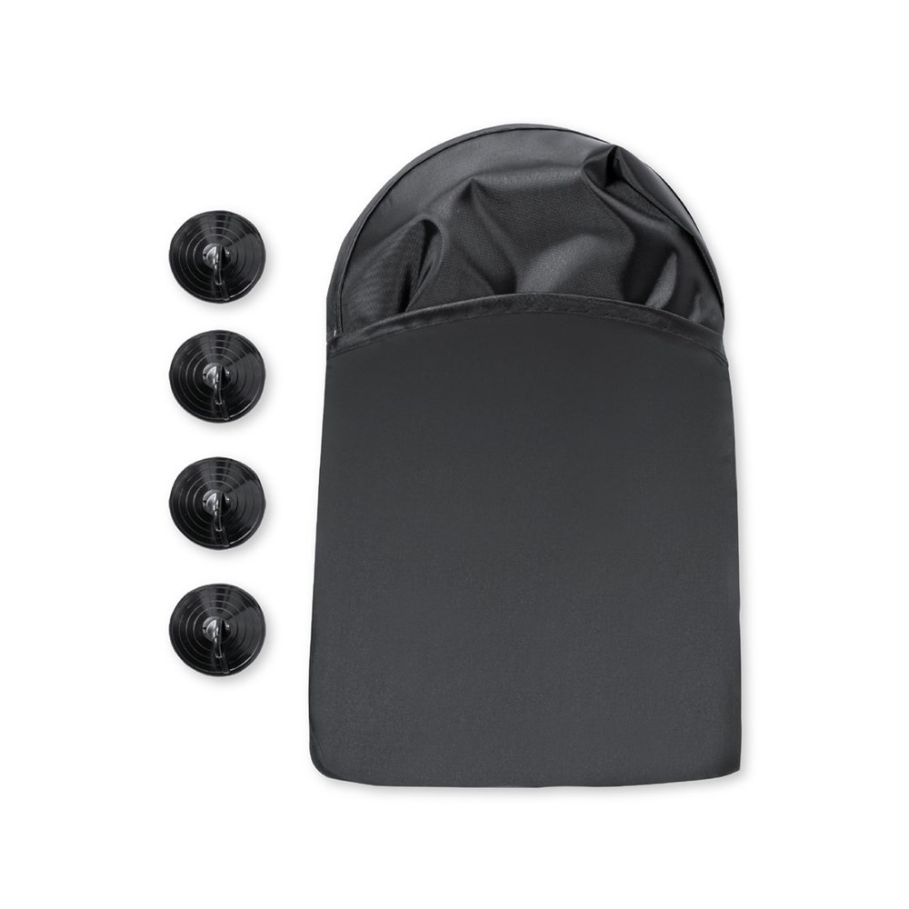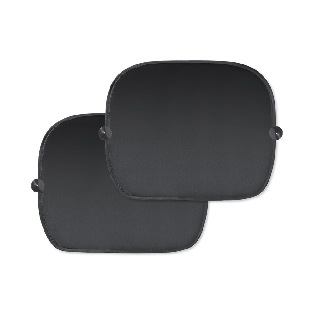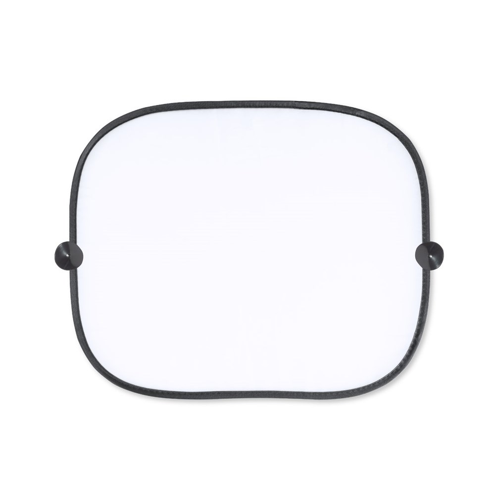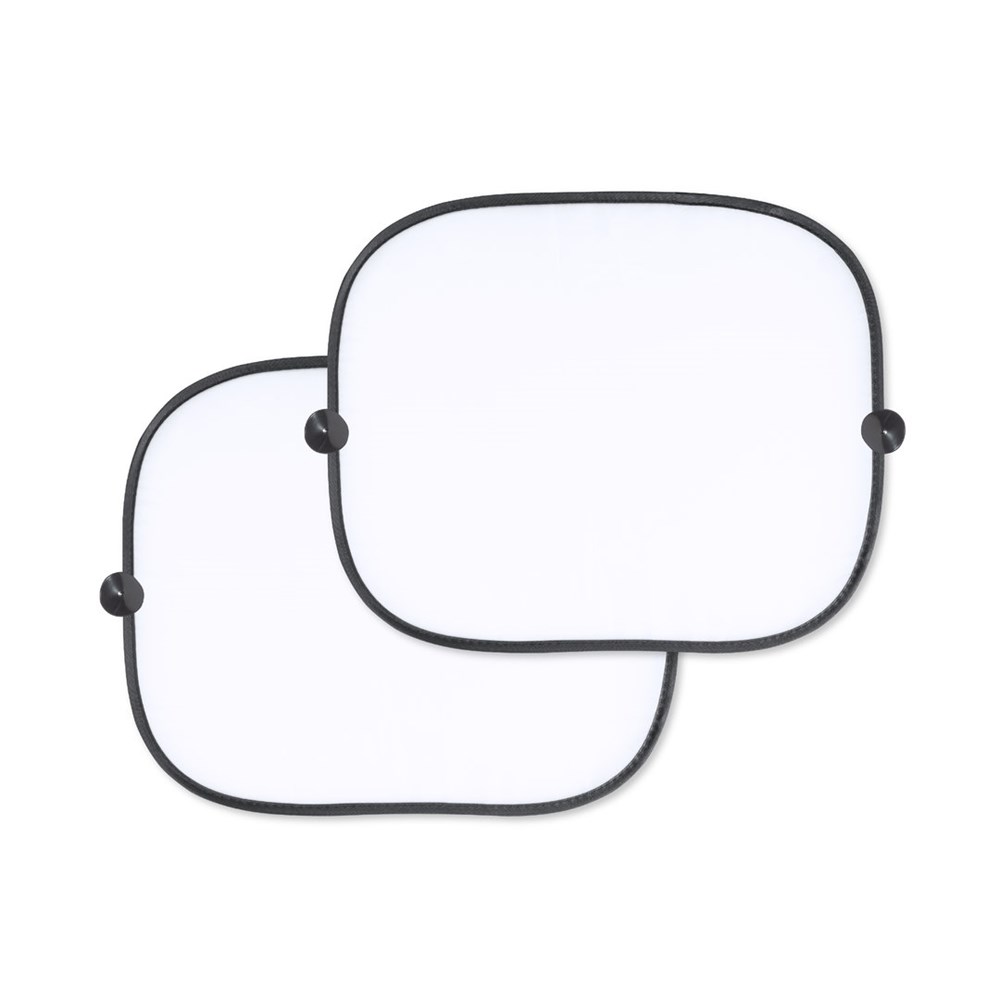 Ein Set mit 2 faltbaren Sonnenschirmen für Autofenster, hergestellt aus strapazierfähigem Polyester. Leicht und jeweils 44 x 36 cm groß, mit verstärkten Kanten und Befestigung über Saugnäpfe (4 Stück im Lieferumfang enthalten). Wird mit einem einfachen Faltsystem und einem individuell passenden Bezug geliefert. Spezielle weiße Farbe zur Sublimation.