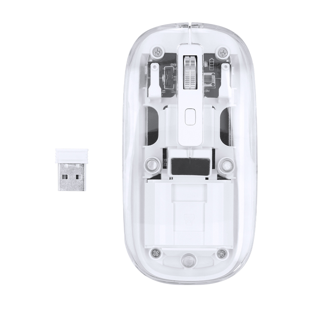 Drahtlose optische Maus in einem originellen Design, mit einer transparenten Darstellung der internen Komponenten des Geräts. Eingebauter 300 mAh Akku und Typ C Ladeanschluss (Kabel im Lieferumfang enthalten). Inklusive DPI-Taste, mit Plug-and-Play-USB-Anschluss und präsentiert in einer individuellen Kraft-Design-Box.