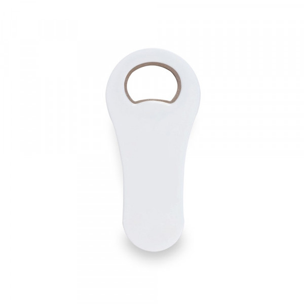 Magnetischer Flaschenöffner mit robustem Körper in verschiedenen Farben und Metallheber zum Öffnen. mehr