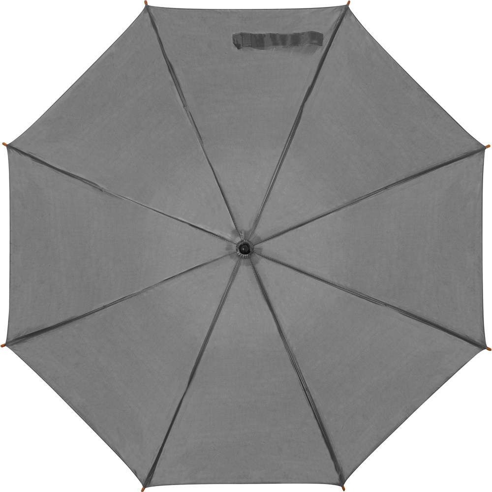 Unser Automatikschirm aus 190T Polyester mit einem gebogenen Holzgriff und Holzspitzen ist nicht... mehr