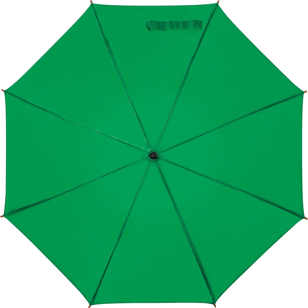 Unser Automatikschirm aus 190T Polyester mit einem gebogenen Holzgriff und Holzspitzen ist nicht... mehr