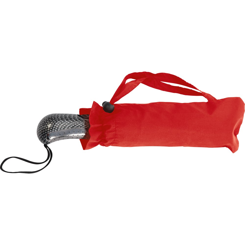 Luxus-Sturmschirm im Taschenformat mit Öffnungs- und Schließautomatik (190T Pongeebespannung, Fiberglas- und Metallgestänge). Elegante Karbonoptik am Griff sowie eine Schutzhülle. Ihre Werbung bringen wir auf einem Segment an.