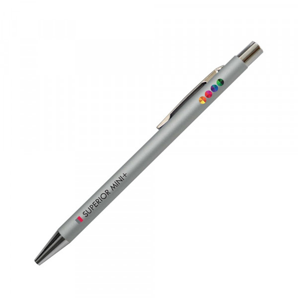 Der Pen Superior Mini+ silver ist die verbesserte Version unseres Pen Superior Mini. Dieser Stift liegt angenehm in der Hand, hat ein modernes und mattes Design. Wir personalisieren den Pen Superior Mini+ silver mit einem Vollfarbdruck.
