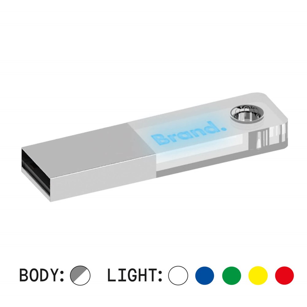 Ein USB-Stick aus transparentem Kunststoff und Metall mit einem modernen und essentiellen Design. Im Inneren des Plexiglas-Teils befindet sich eine leuchtende LED (Farbe Ihrer Wahl), die aufleuchtet, wenn der Stick an den Computer angeschlossen ist, und das Logo auf der Oberfläche oder im Inneren des Plexiglas hervorhebt. Der Barracuda kann mit einer dreidimensionalen Lasergravur auf dem Plexiglas und mit einer Lasergravur auf der Metalloberfläche individuell gestaltet werden. Sie ist außerdem mit einem funktionellen Loch für den Durchgang von Schnürsenkeln oder Zubehör ausgestattet.