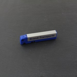 Größe (L x B x H): 74 x 19 x 10 mm, Gewicht: 9 g, mögliche Veredelungsbereiche: Vorderseite, Größe 55 x 5 mm, Rückseite, Größe 55 x 5 mm, Einfärben Kunststoff ab 500 Stück