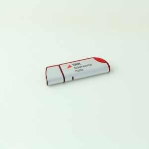 Größe (L x B x H): 69 x 20 x 9 mm, Gewicht: 11 g, mögliche Veredelungsbereiche: Vorderseite, Größe 30 x 13 mm, Rückseite, Größe 30 x 13 mm, Vorderseite Kappe, Größe 8 x 13 mm, Rückseite Kappe, Größe 8 x 13 mm, Einfärben Kunststoff ab 100 Stück
