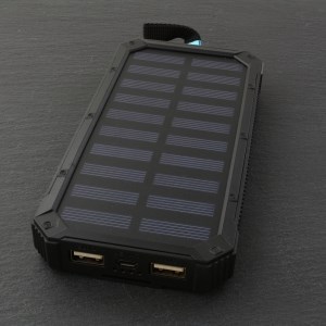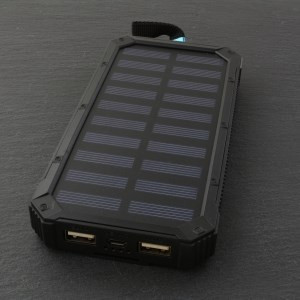 Größe (L x B x H): 160 x 79 x 18 mm, Gewicht: 210 g, mögliche Veredelungsbereiche: Rückseite, Größe 120 x 45 mm, Einfärben Kunststoff ab 1000 Stück, Hinweis: Powerbank mit Solarzellen