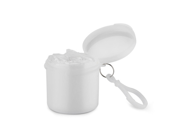 Der FLUXY-Regenponcho ist zur einfachen Aufbewahrung in einer Kunststoffbox verpackt. Dank seiner geringen Größe passt es in jeden Rucksack oder jede Handtasche. Kann mit einem Kunststoffgriff an einer Gürtelschlaufe befestigt werden.