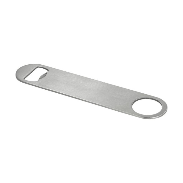 Einfach, aber wirkungsvoll. Flacher Flaschenöffner aus Edelstahl. Eignet sich aufgrund des Loches perfekt für kleine Spinner-Shows hinter der Bar. Außerdem gut an magnetischen Oberflächen zu befestigen.