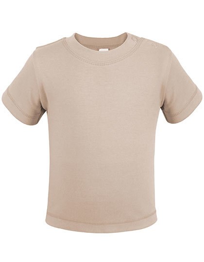 Kurzärmeliges Baby-T-Shirt | Bio-Baumwolle und soziale Standards | Druckknopfverschluss an der Schulter für zusätzlichen Komfort | Weiche und elastische Interlock-Verarbeitung | 60 °C waschbar | Reaktiv gefärbt